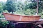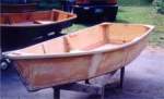 Like I said, I was just foolin' around when I built this one. We swept a batten along the sheer line just to give it a little character. | All of the wood for this boat came from 2 partial sheets of plywood. The seat top was cut from the scrap of the bulkhead...this is when these boats took on the name "Scrappies". | With only one seat she was really destined to be a rack tender. I still get reports of the owner trucking it around showing it off to his friends. |